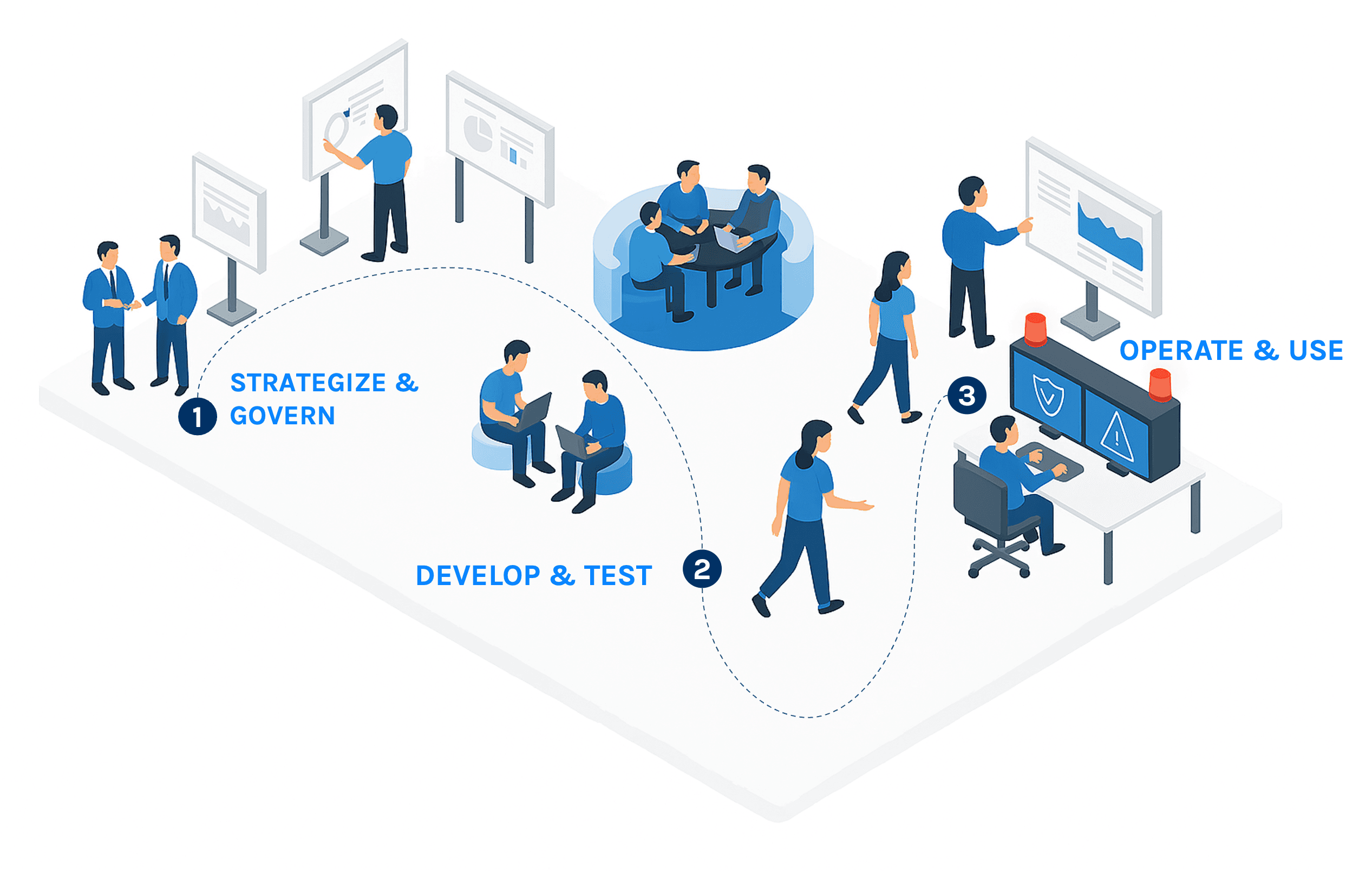 Sicherer, kontrollierter und nachvollziehbarer Betrieb sowie verantwortungsvolle Nutzung von KI durch klare Prozesse, Überwachung und Nutzerbefähigung.